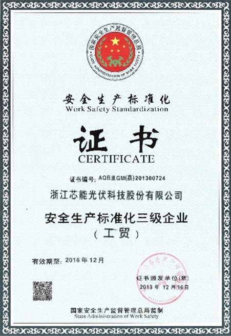 公司通過安全生產(chǎn)標(biāo)準(zhǔn)化三級(jí)驗(yàn)收 2013-12-06 00:00:00 浙江芯能光伏科技股份有限公司 瀏覽次數(shù) 8040 上一條沒有了 下一條“浙江芯能海寧市建材商貿(mào)城1.6MWp光電建筑一體化應(yīng)用示范項(xiàng)目”成功驗(yàn)收