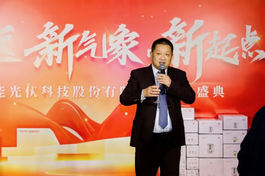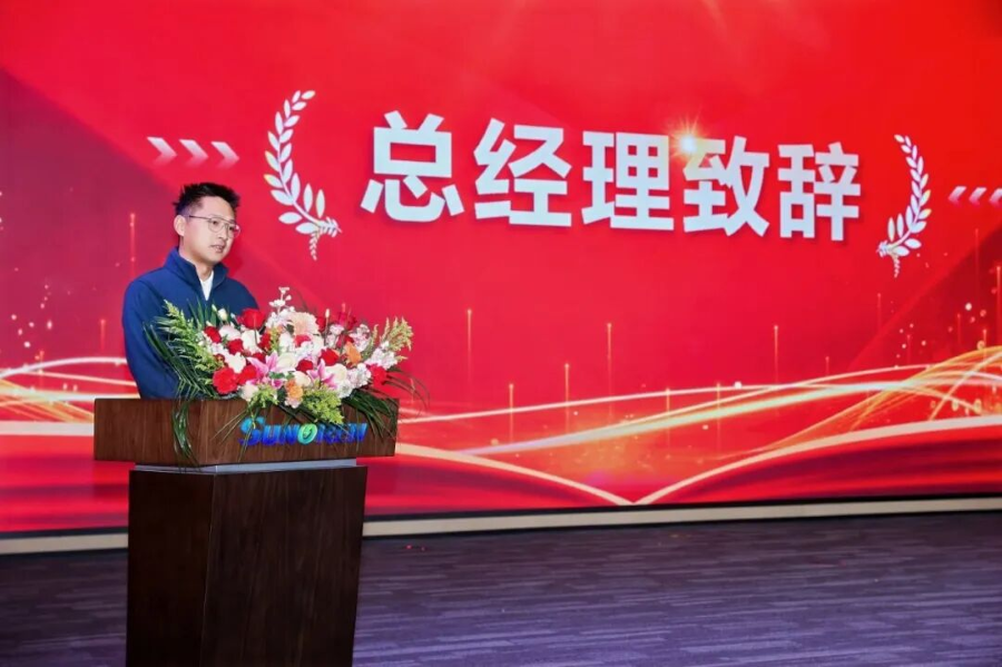 隨后,總經理張震豪先生登臺發表講話。他系統總結了公司2025年取得的穩健業績,并圍繞“新園區、新氣象、新起點”主題,清晰勾勒了未來戰略。總經理表示,新園區的建設不僅是公司實力的一次飛躍,更是全體芯能人奮斗的新舞臺。面對新起點下的機遇與挑戰,他號召大家化壓力為動力,凝心聚力,確保實現新一年各項業務目標。他還特別指出,儲能業務作為公司戰略布局的重要一環,將是驅動未來增長的關鍵引擎,激勵全員以全新面貌,共同開創芯能科技的嶄新局面。